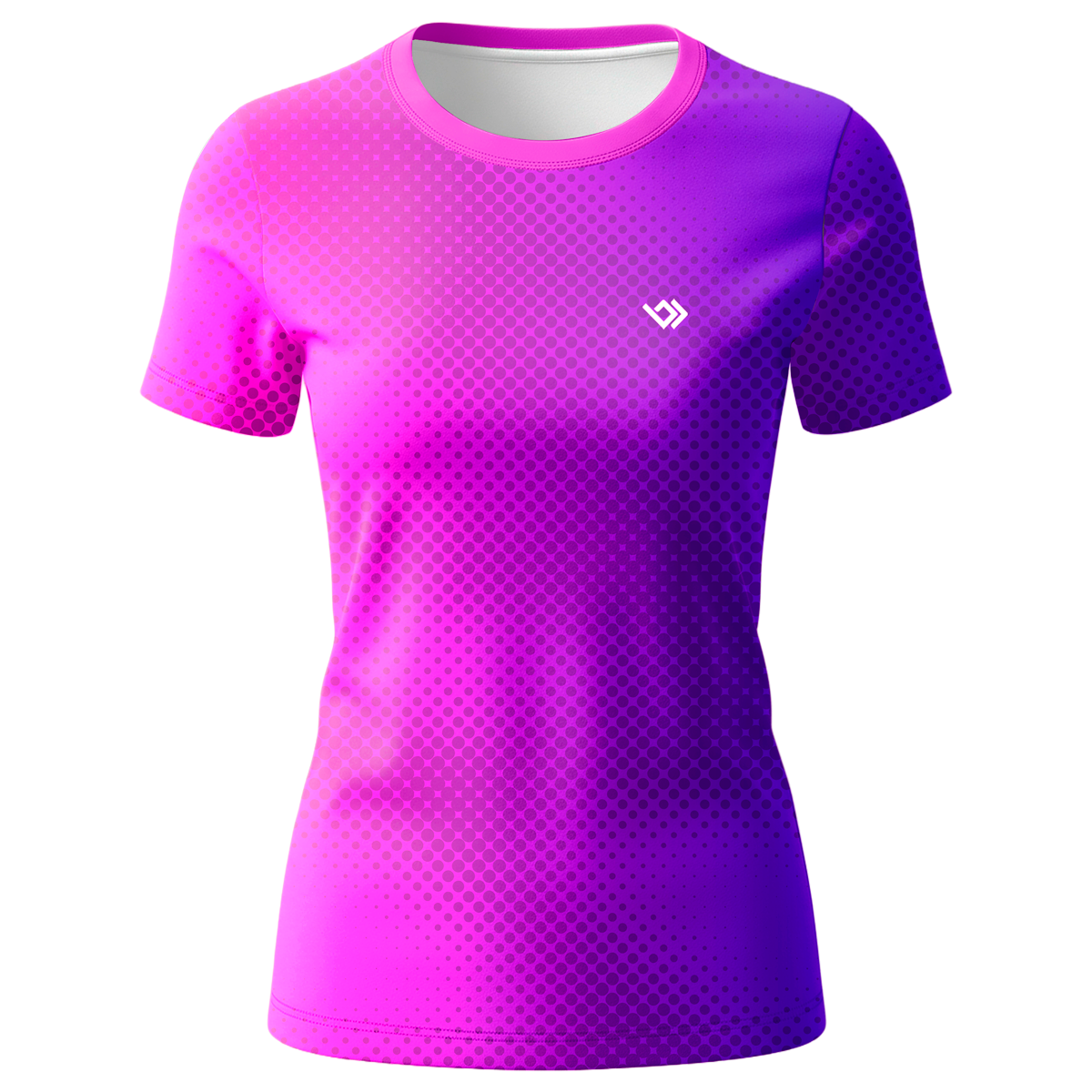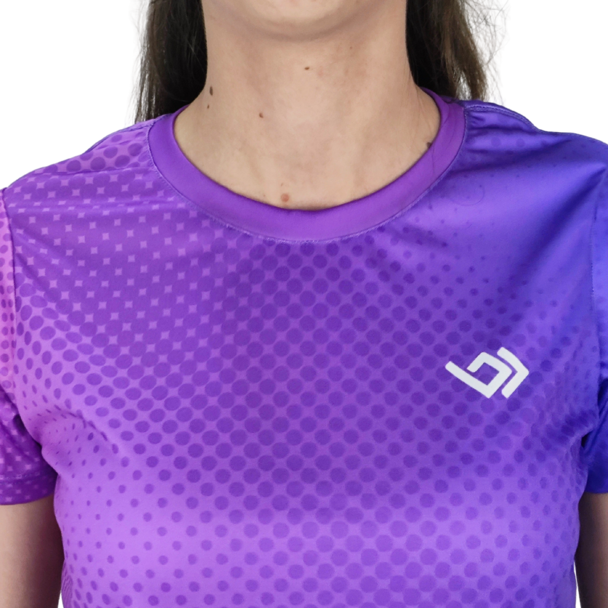 Camiseta Dry-Fit Proteção UV50+ Esportiva Camisa Baby Look Feminina Academia Treino Rosa e Roxo