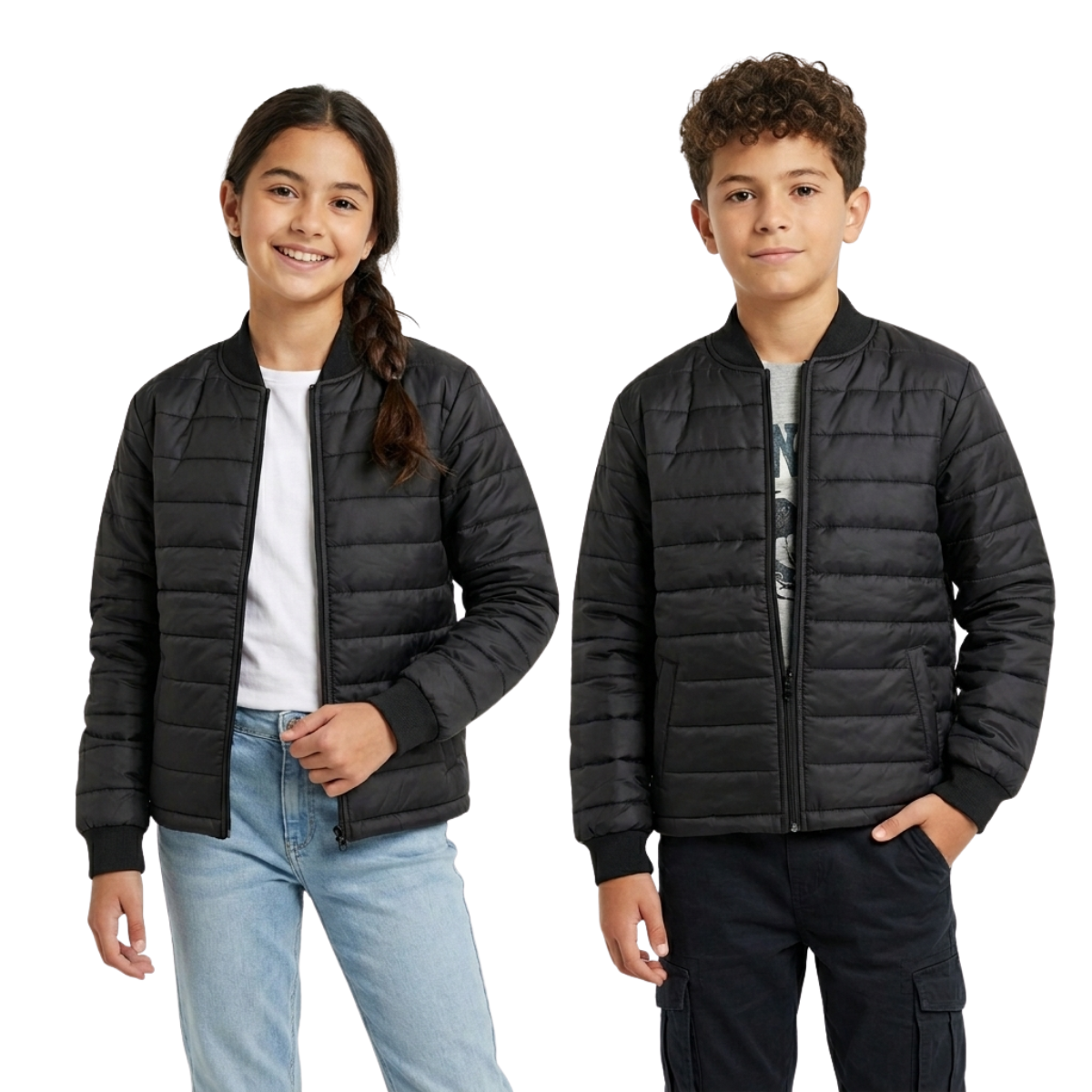 Jaqueta Bobojaco Infantil Juvenil Unissex Preta – Blusa de Frio Puffer / Casaco Gomado Super Quentinho para o Inverno