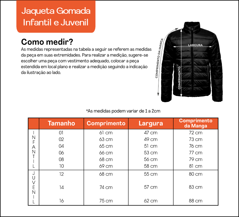 A jaqueta gomada estilo bobojaco possui visual bonito e moderno, sendo perfeita para compor looks de inverno com estilo. O modelo unissex combina com meninos e meninas.