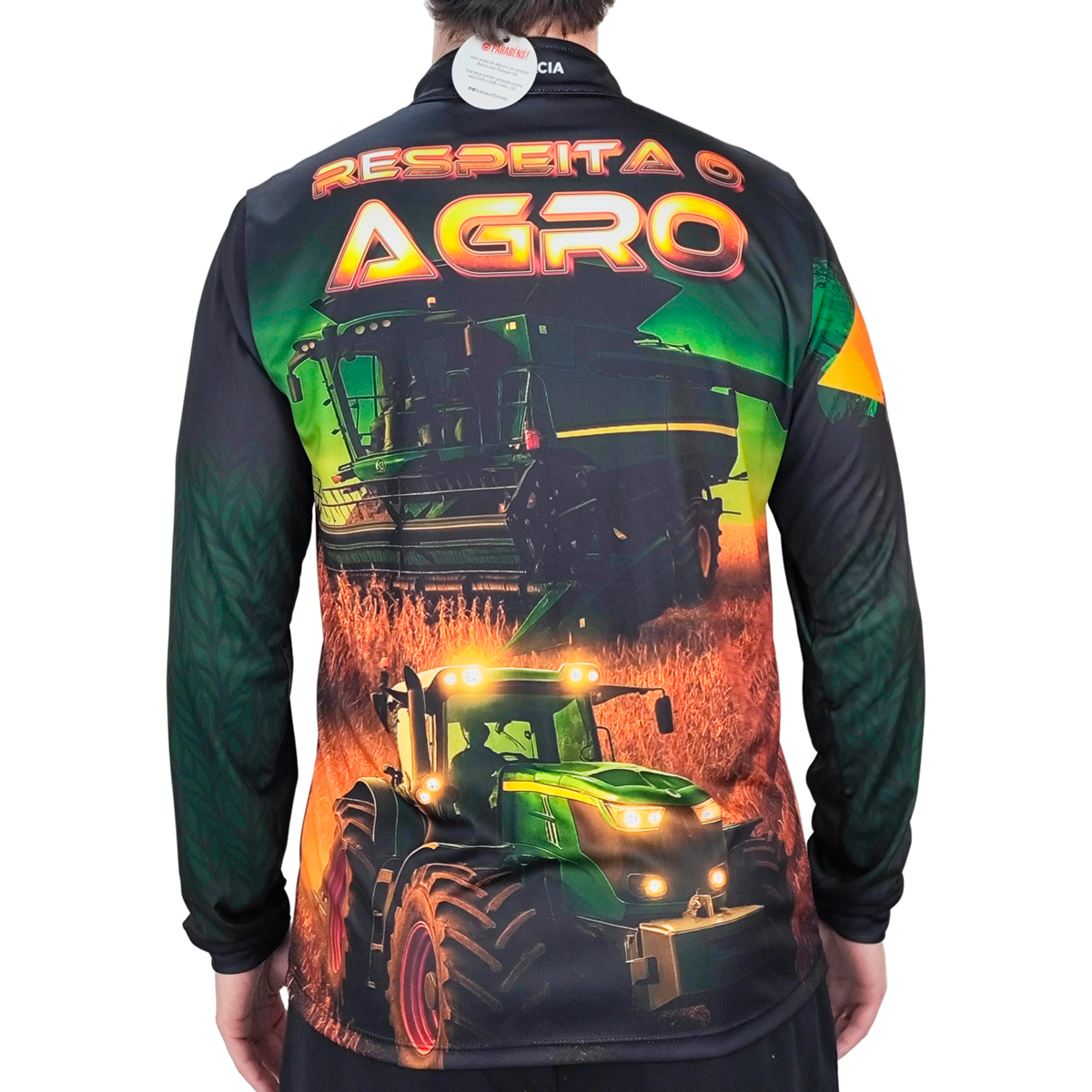 Camiseta agro manga longa com proteção solar UV50+, tecido Dry-Fit leve e respirável, gola alta com zíper, costuras reforçadas e ajuste perfeito. Ideal para sol intenso, com conforto, estilo e durabilidade. Garantia de 30 dias contra defeito de fabricação.