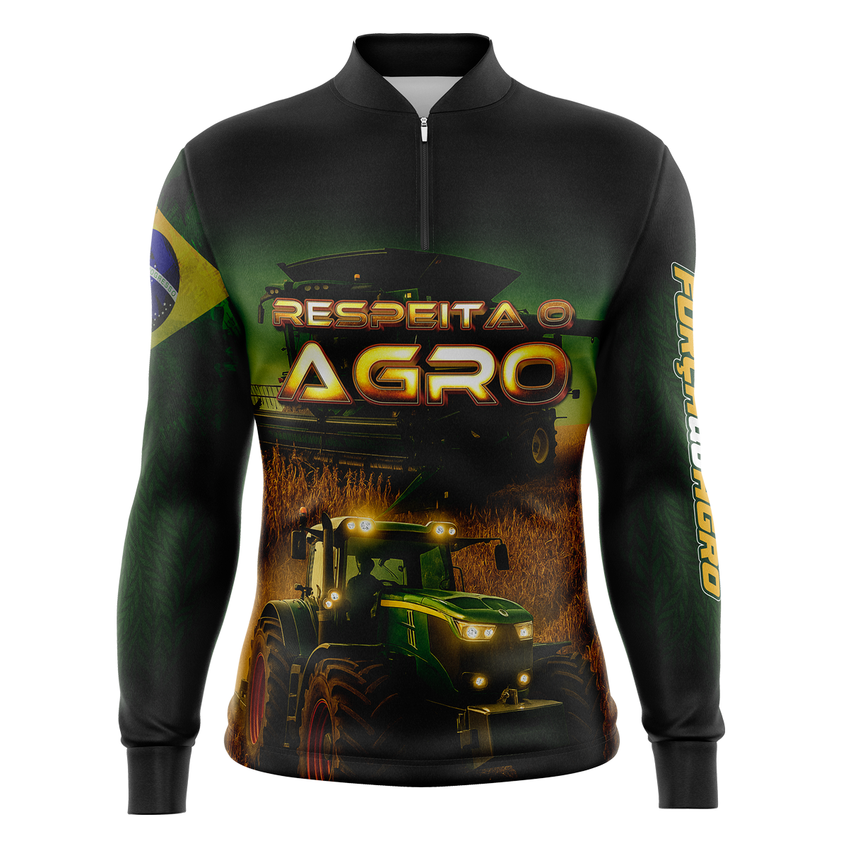 Camiseta Agro manga longa com proteção solar UV50+ em Dry-Fit com alta durabilidade. Gola com zíper e costuras reforçadas. Melhor Custo-Benefício! Compre já!